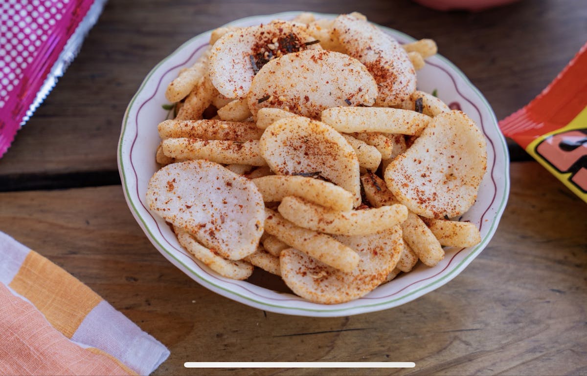 - Sprinkle ‘Rub with Love’ Spicy Tokyo Rub all over shrimp chips and mix.