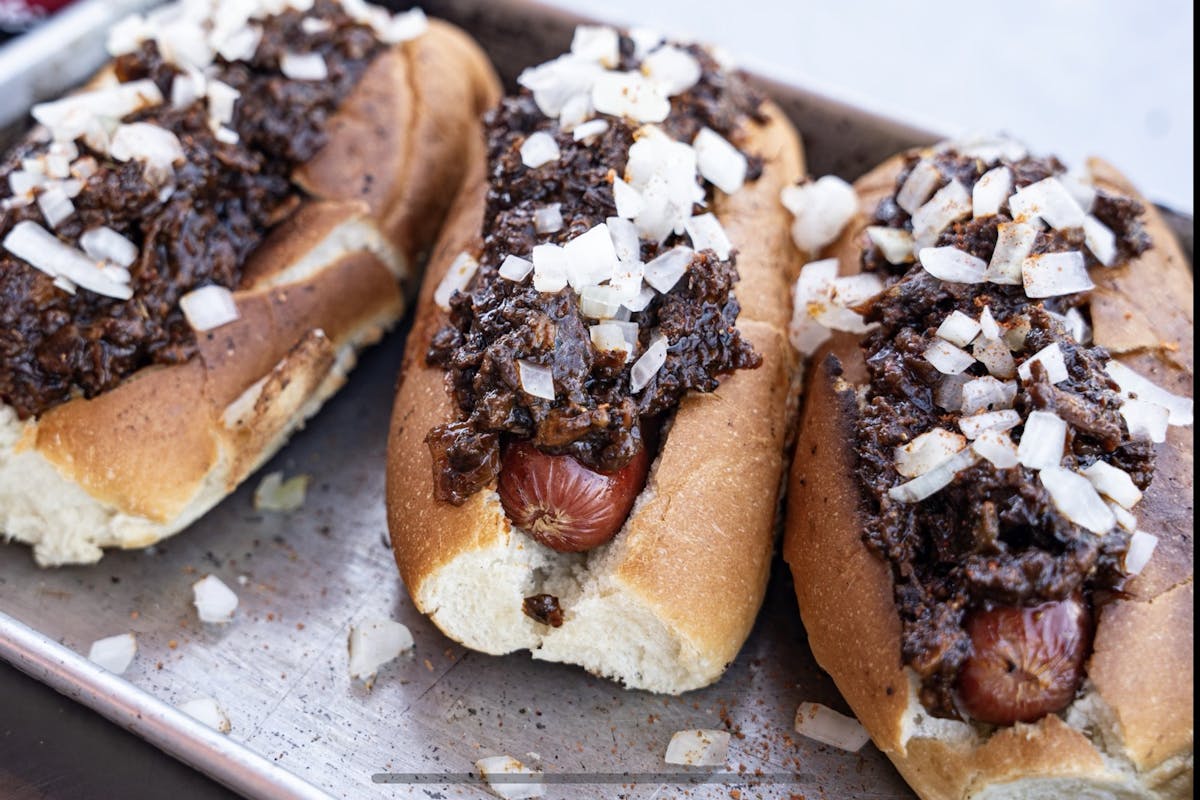 - Top Chili Dog with chopped white onion